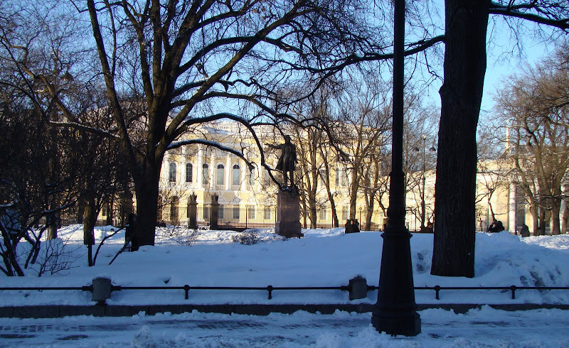 Весна. Почти белые ночи; наконец распустились листья на деревьях. И мы ночь напролет болтаемся в садике под Пушкиным, и пытаем несчастного трубача – Бочаров была его фамилия, кажется - почто он, гад,постоянно выдает киксы на «Балладе».