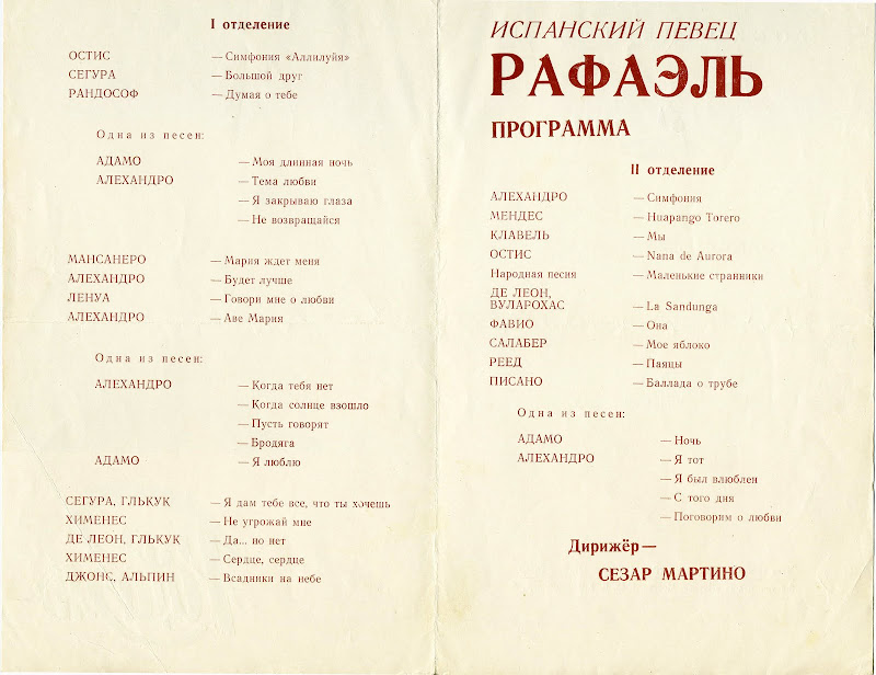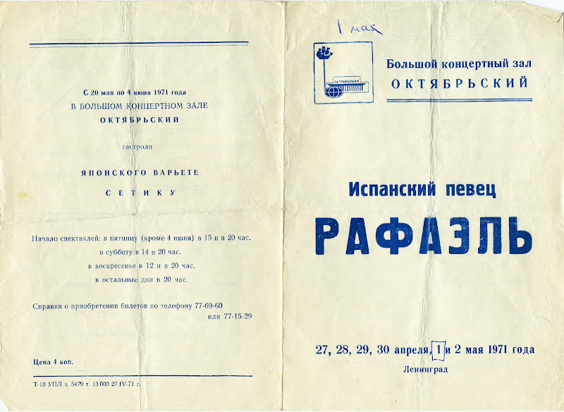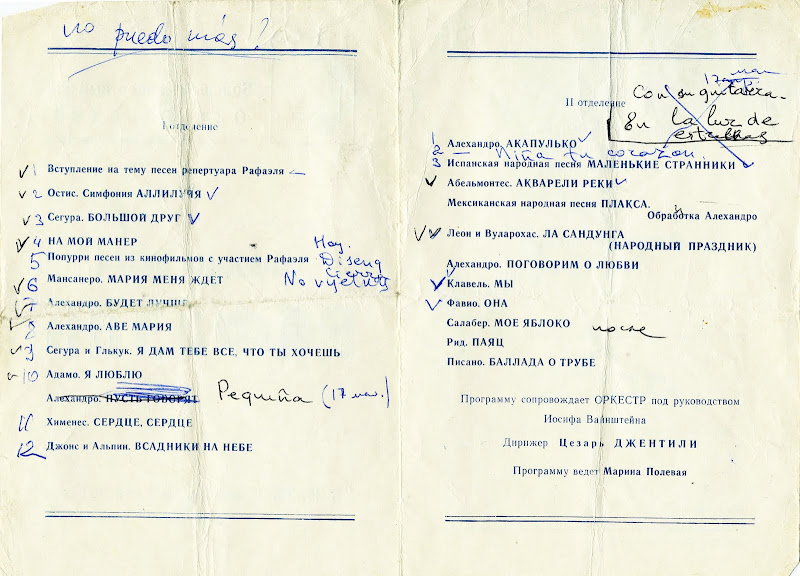 А вот это – помнит День Первый. Это записывалось во время Первого Концерта Рафаэля в СССР – 23 апреля 1971 года