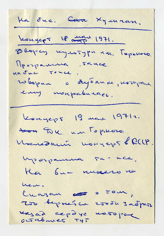 – это 17 мая 1971, концерт в «Музкомедии» - мы уже опытные, за плечами девять дней, проведенных в ДК Горького и «Октябрьском». Он вернулся к нам, впереди еще два концерта в ДК Горького.